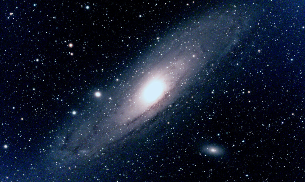 - アンドロメダ銀河は肉眼でも見える数少ない銀河ですが、ぼんやりとした「雲」のように見えます。